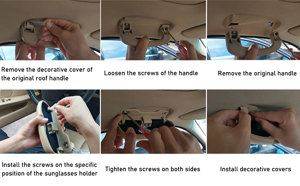 The Grab Handle Sunglasses Case is easy to install and use, with a one-hand switch that allows for quick and effortless access to your sunglasses. Its high-quality damping spring ensures that the holder closes slowly, providing better protection for your glasses and preventing any annoying rattling while driving.